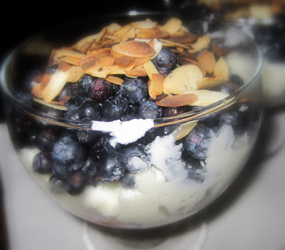 Biszkopt kroję na paski,połowę z nich smaruję konfiturą i łączę z drugim kawałkiem – takie kanapeczki powstają. Kroję je na kosteczki i układam na dnie pucharków.Polewam Limoncello.Mascarpone ubijam na puszysto z sokiem z pomarańczy – wyciskam go z połowy owocu.Wykładam na biszkopty.Posypuję obficie jagodami.Przykrywam folią i wstawiam na kilka godzin do lodówki.Na patelni prażę płatki migdałowe.Wyjmuję trifle z lodówki.Polewam znowu Limoncello jagody, na to płatki.Podaję!
