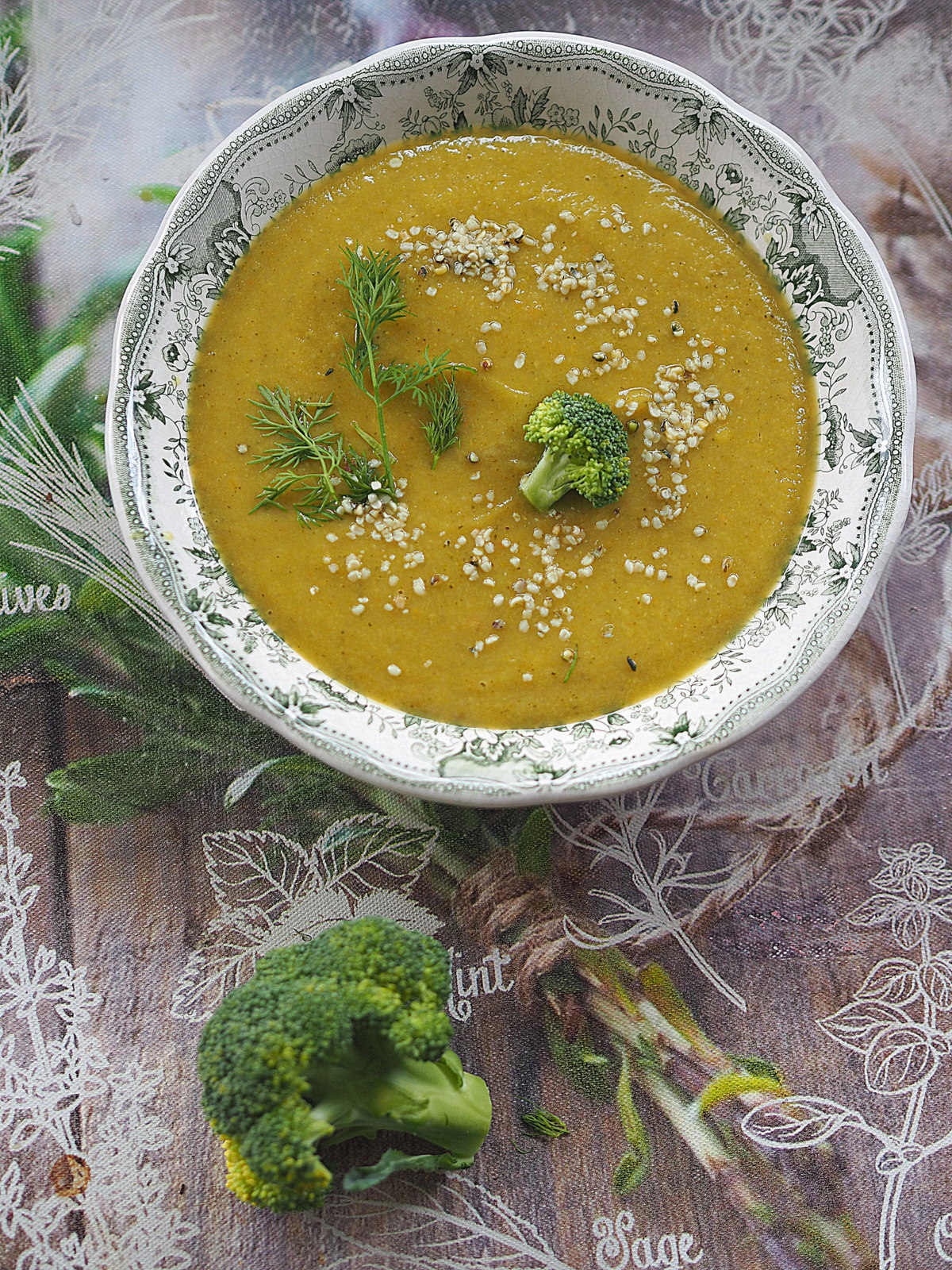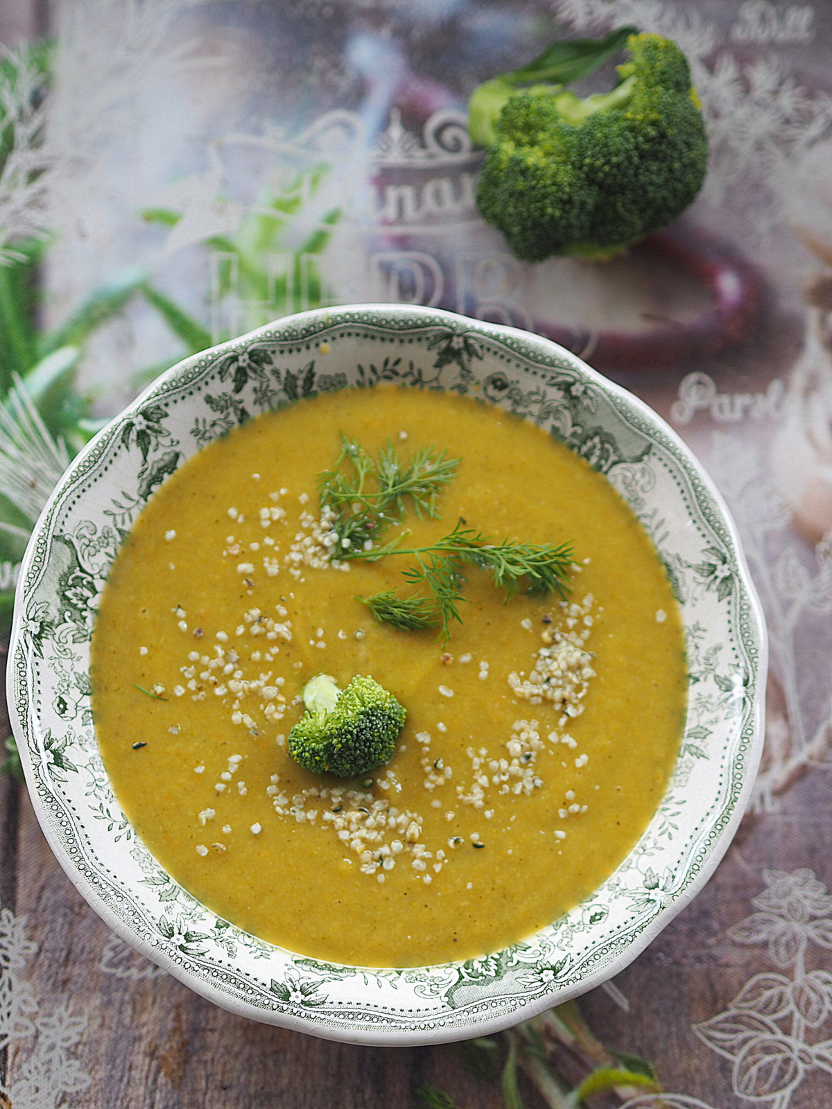 Można ją podać z wieloma dodatkami – grzanki, groszek ptysiowy, świeże zioła, podprażone ziarna słonecznika lub pestki dyni, nasiona konopi jak u mnie. Równie dobrze można podać tę zupę bez żadnych dodatków. I tak będzie mega smaczna!