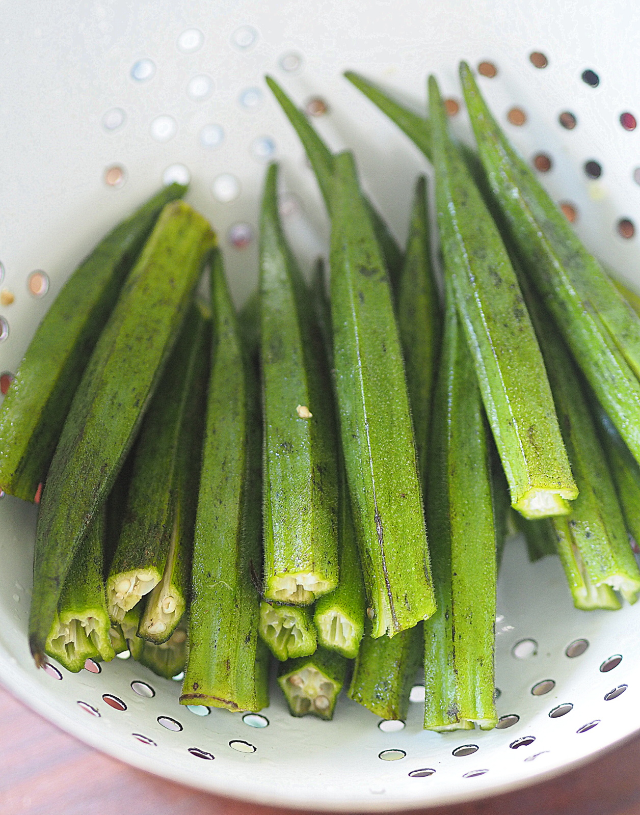 Okra to dość rzadko spotykane w Polsce warzywo. Świeże kupuję w azjatyckich lub hinduskich sklepach. Okra-  piżmian jadalny, zwany też ketmią lub gumbo, swoim wyglądem przypomina chilli, ale jest krewną hibiskusa.